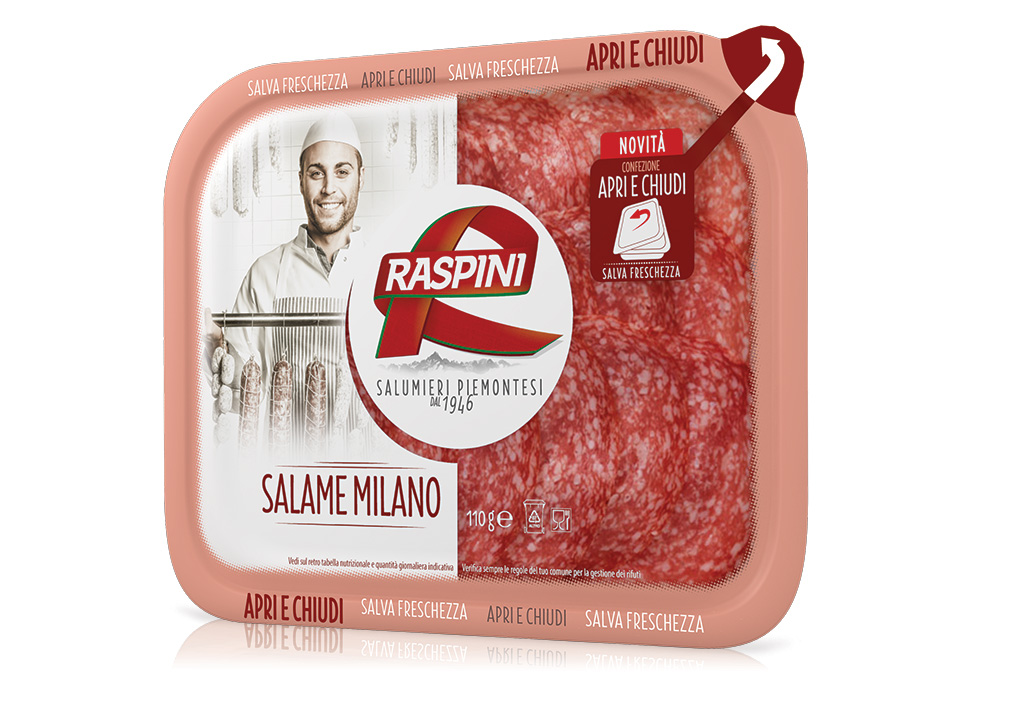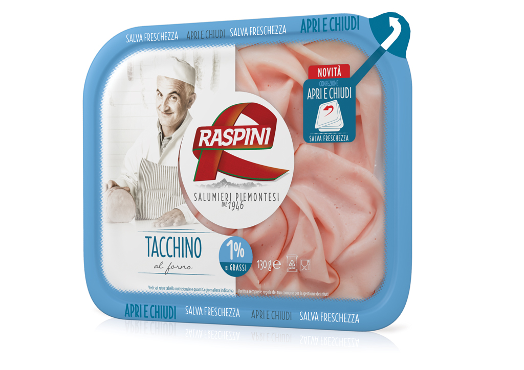Restyling del logo dell’intera range Raspini “salumi in vaschetta”. Logo: è richiesto di imodernare l’aspetto grafico mantenendo e rinforzando la storicità e la tradizione del brand dando al logo un aspetto grafico che ricordi maggiormente la lettera R di Raspini.